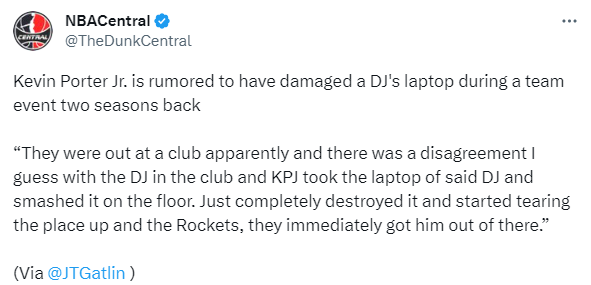 小波特涉嫌家暴女友一事还未结束,火箭随队记者Jackson Gatlin披露小波特之前的暴力前科,Jackson Gatlin表示:两个赛季前,小波特和其他火箭球员前往一家夜店,我猜他们是和夜店的DJ发生了争执,然后波特就拿走了DJ的笔记本电脑,并把它狠狠砸在地上,笔记本电脑完全被破坏,随后小波特开始在夜店内疯狂打砸。然后火箭方面立刻将他带出了该场所。