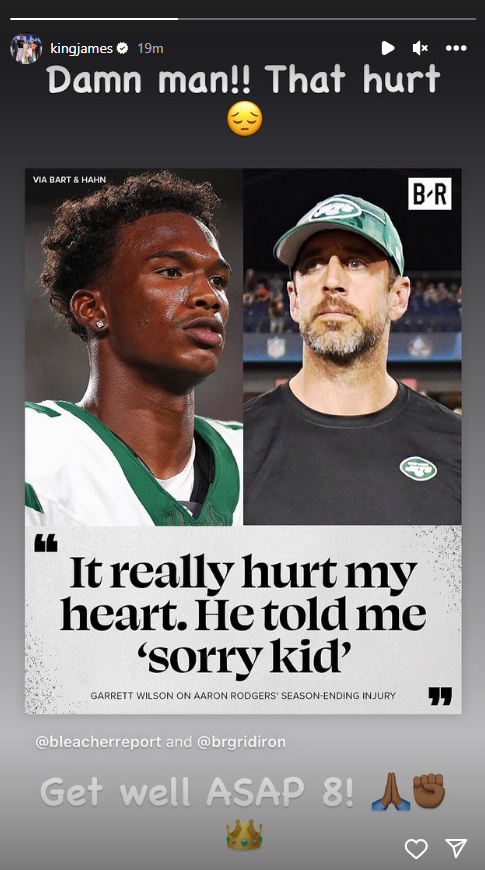 罗杰斯的队友加勒特-威尔逊接受采访时表示:这真的让我心痛。他对我说,“孩子,对不起。”詹姆斯转发这段采访并且配文写道:该死!心痛!早日康复,8号!