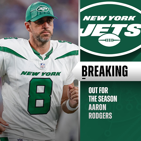 来源:JRS直播网09-13 13:20JRS直播网09月12日近日NFL赛场上出现重大伤病,纽约喷气机队39岁的明星四分卫阿隆-罗杰斯在赛季首战就遭遇了跟腱撕裂的重伤,因伤赛季报销,詹姆斯和杜兰特都十分痛心,发声祝其早日康复。