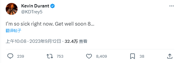 39岁阿隆-罗杰斯惨遭重伤离场,最终确诊为跟腱完全断裂,赛季报销;太阳球星杜兰特感同身受,第一时间发推写道:我现在感到很难受。8号,早日康复。