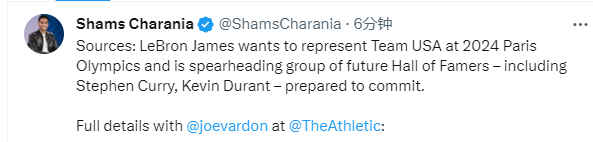 詹皇计划出战巴黎奥运:招募杜兰特库里等巨星 欧文布克等也有意参加