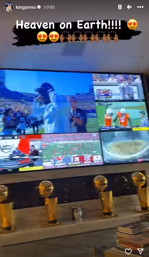 来源:JRS直播网09-10 11:57JRS直播网09月10日,詹姆斯连续更新社媒动态,晒出自己在家中多屏看电视的画面,电视柜上摆着四座总冠军奖杯十分醒目,配文写道:人间天堂;詹姆斯还晒出施罗德和里夫斯深情拥抱一幕,表示:我的兄弟们,我爱你们。
