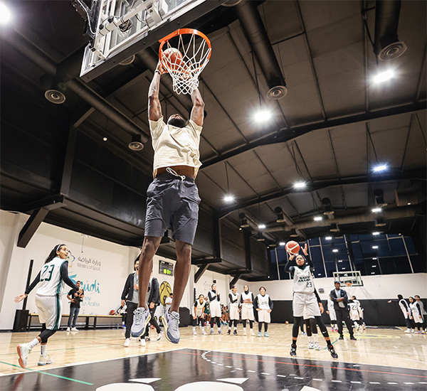 此次沙特之旅,詹姆斯在沙特首都利雅得的Al-Azem学院参加了一次特别指导活动,在训练中詹姆斯与沙特年轻球员在同一片球场训练,并指导了这些年轻人运球和投篮;指导期间,詹姆斯满脸笑容十分开心,大秀扣篮以及签名合影留念。