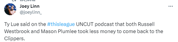 今年休赛期,普拉姆拉和快船续签1年500万美元新合同,威少则是大幅度降薪,和快船续签2年780万美元,第二年是球员选项。