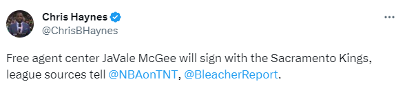 对于麦基签约国王,湖人记者Ryan Ward表示有点令人意外,我以为他会重返湖人或者勇士的。