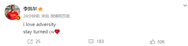 来源:JRS直播网08-27 10:47JRS直播网08月27日讯2023年篮球世界杯,中国男篮首战42分惨败塞尔维亚,李凯尔的世界杯首秀演砸了,全场出战26分钟,9投0中0分4篮板4助攻,在场正负值-35,李凯尔一度沮丧地怒摔毛巾宣泄情绪;李凯尔0分以及42分惨败后首次发声,更新社媒写道:我喜欢逆境,敬请期待(中国国旗+爱心表情)。