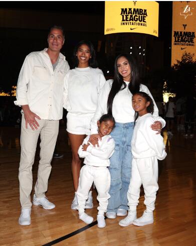 瓦妮莎带着三个女儿出席曼巴邀请赛,在活动现场与佩林卡合影留念,他们都身穿白色服装坐在场边观战,瓦妮莎还脱掉T恤,身穿科比24号球衣;前湖人球员费舍尔、阿里扎和巴恩斯都来到现场,他们都和科比当过队友,尤其是费舍尔,他和科比一起五次夺得总冠军。