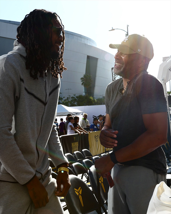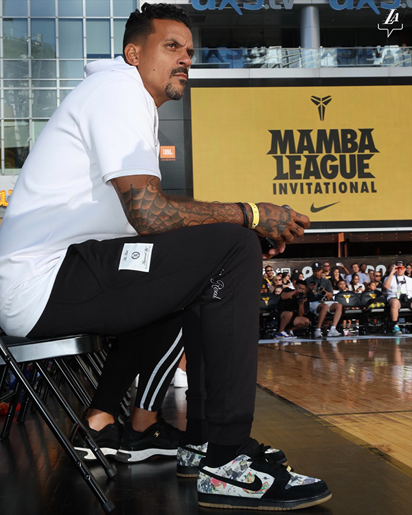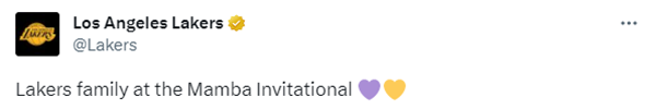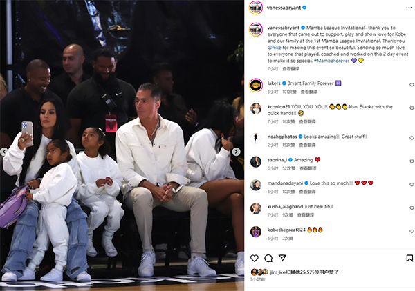 湖人官方晒照并且写道:湖人家族出席曼巴邀请赛。
