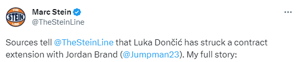 恭喜东契奇获大合同:已与AJ续签至2029年 已拥有两款签名战靴