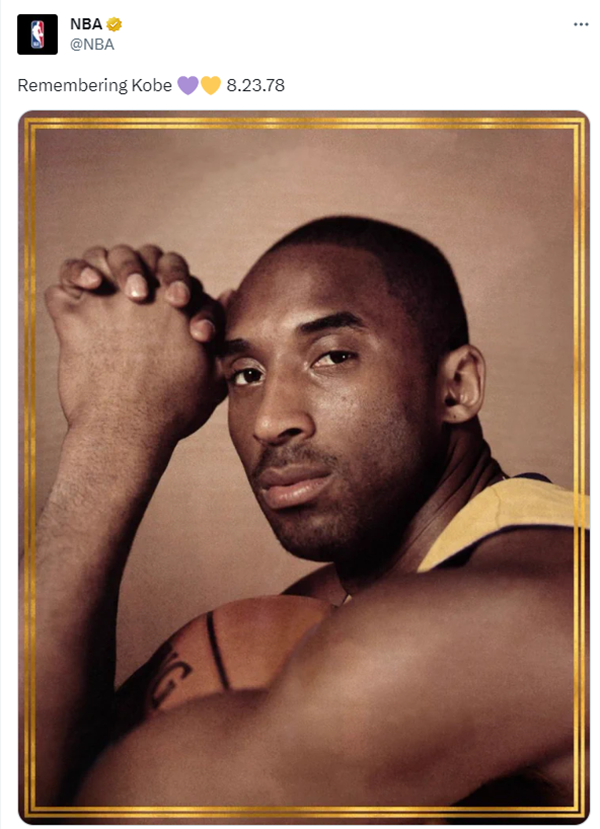 NBA官方晒照并且配文写道:纪念科比,1978年8月23日。