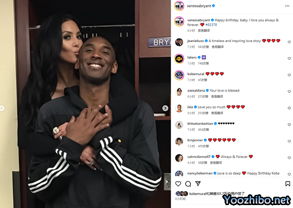 瓦妮莎祝贺科比的动态引热议,100多万人为瓦妮莎点赞,湖人女老板珍妮-巴斯回复:一个永恒而鼓舞人心的爱情故事;湖人官方回复:永远。