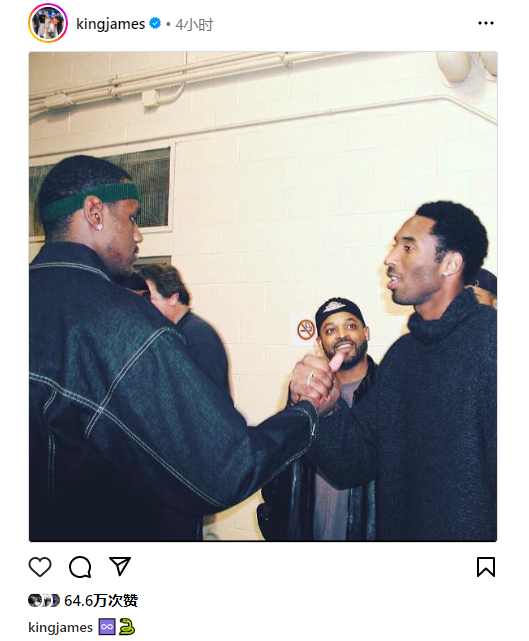 詹姆斯晒出他年轻时期与科比的合影,祝贺科比生日快乐:永远的黑曼巴。