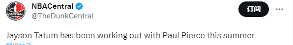 据报道,今夏塔图姆还和绿军名宿保罗-皮尔斯一起训练,接受前辈的指点以及特训。