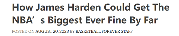 如果确定76人和哈登存在违规,76人队可能会被罚最多750万美元和选秀签,哈登现有的合同可能会被废除,也就是他拿不到本赛季的薪水。哈登本人还要面临最高35万美元的罚款。