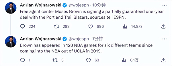 来源:JRS直播网08-22 11:00JRS直播网08月22日讯,据名记Woj报道,自由球员摩西-布朗已经和开拓者签下一份一年部分保障的合同。自从2019年进入联盟以来,布朗打了4个赛季,总计出战128场NBA比赛,已经在6支球队效力过,分别是开拓者、雷霆、独行侠、骑士、快船和篮网。他的生涯从开拓者开始,如今又回到开拓者效力。