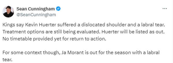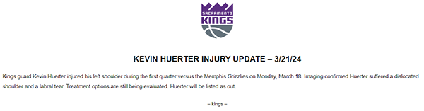 重磅!国王射手遭重创,左肩脱臼盂唇撕裂,赛季报销疑云笼罩