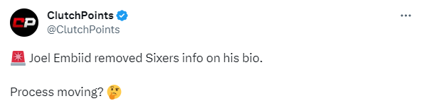 效仿哈登申请离队?恩比德删除76人球员简介 球迷热议费城麻烦了