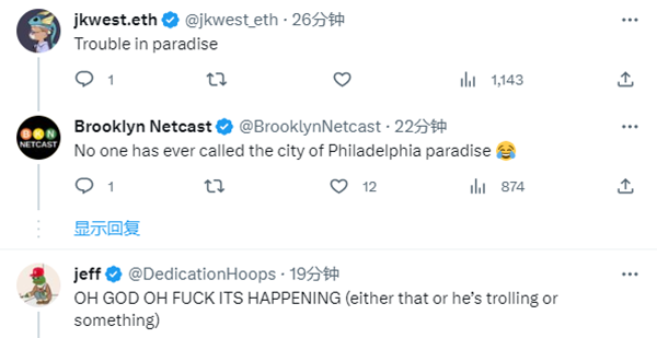 为何恩比德突然删除76人球员简介?不禁令人猜测恩比德也想申请离队,恩比德如此举动引热议,有球迷直言天堂有麻烦了,篮网球迷表示没有人称费城是天堂,还有球迷表示天哪,究竟发生了什么事。