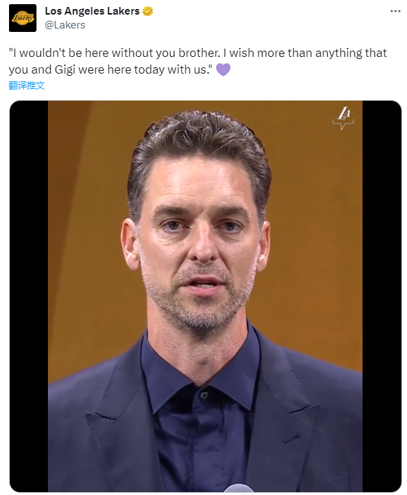 加索尔还动情表示:如果没有你兄弟,我就不会在这里。想念你,爱你,我多么希望你和吉吉今天能和我们在一起。
