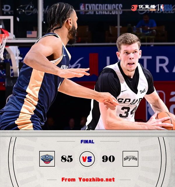 JRS直播网7月17日讯 NBA夏季联赛继续进行,马刺迎战鹈鹕,去年的14号秀乔丹-霍金斯领衔鹈鹕阵容,马刺这边,两位去年的次轮秀哈里森-英格拉姆和西迪-西索科领衔出战。此役一上来,两队便你来我往比分紧咬,英格拉姆手感发烫连中三分,鹈鹕则在内线连续取分,首节结束时两队战成21平,次节回来,米尼克斯连投带罚单节贡献8分,帮助马刺一度确立优势,马特科维奇连续暴扣强势回应,半场战罢,马刺领先4分。短暂调整后马刺内外开花再度拉开比分,鹈鹕内线取分止住颓势,三节结束后马刺继续领先7分,末节上来,场上形势风云突变,马特科维奇里突外投无人可挡,率领鹈鹕一波16-6抹平分差,决胜时刻布耶连拿5分,鹈鹕绝平三分不中,多诺万-威廉姆斯摘下关键篮板后两罚全中锁定胜局,最终马刺90-85力克鹈鹕送对手夏联3连败。