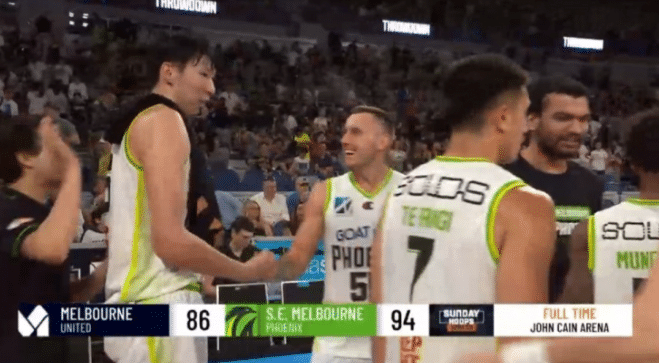 周琦的表现可以说征服了所有人,所以当最后1分钟基本上确定胜局的时候,主帅将他换下,这是功臣才有的待遇。而比赛结束之后,凤凰队全体球员围在一起,用中文加油:“one two three加油”。