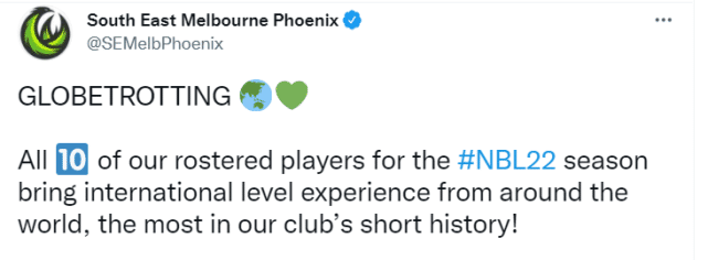 来源:JRS直播网09-30 11:05JRS直播网9月30日讯 ,澳大利亚联赛的墨尔本凤凰队更新社媒,晒出了新赛季的10人阵容,并配文写道:“环球旅行!我们新赛季全队的10名球员,都有国际比赛的经历,在俱乐部的短暂队史上是最多的。”