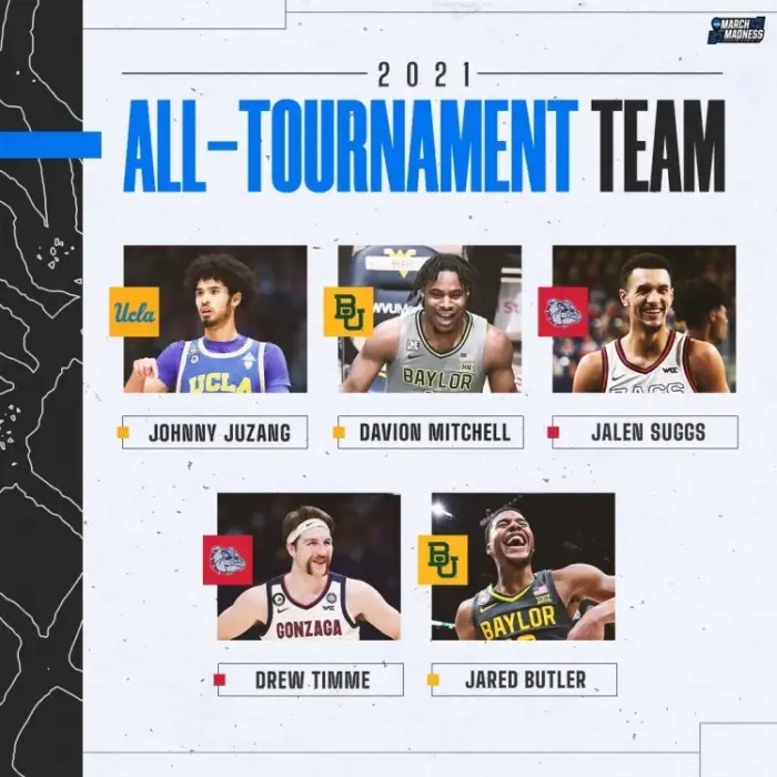 但无论如何,那一记绝杀注定让萨格斯是本届NCAA最耀眼的球员,他也成功入选2021届疯三最佳阵容。