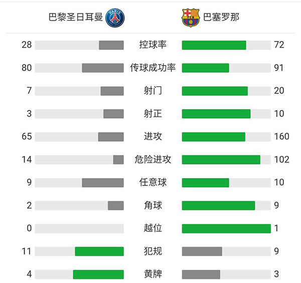 来源:JRS直播网03-11 10:20 JRS直播网讯:北京时间3月11日04:00,欧冠1/8决赛次回合,巴黎圣日耳曼主场迎战巴塞罗那(首回合巴黎4-1获胜)。上半场德斯特中楣,朗格莱送点,姆巴佩点射首开记录,梅西世界波扳平比分,随后格列兹曼造点,梅西主罚被纳瓦斯扑出。下半场略为平淡,双方都没有太好的机会。最终,巴黎1-1巴萨,总比分5-2淘汰对手晋级。