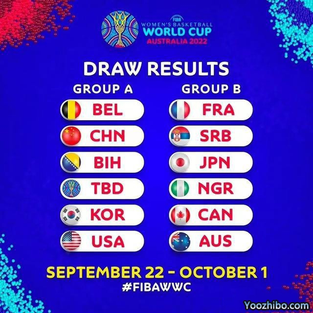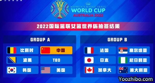 A组:比利时女篮、中国女篮、波黑女篮、待定球队、韩国女篮、美国女篮;