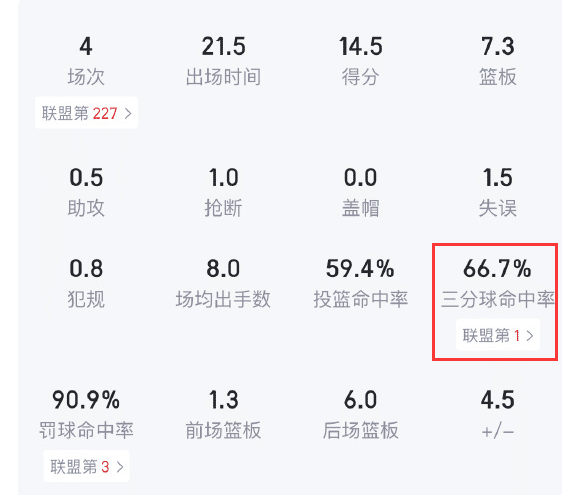 目前CBA的三分球命中率上,易建联以66.7%高居第一名,罚球命中率超过90%,高居联盟第三。年轻的时候易建联就擅长中远距离投射,如今年龄偏大,对抗能力逐渐下降之后,易建联的投篮能力依旧很强。虽然易建联的年龄不小了,但他在广东男篮的地位依旧很大,也有很关键的作用。到了中国男篮,易建联也是领袖级别的球员,他也是后姚明、王治郅时代中国男篮的绝对领军人物。