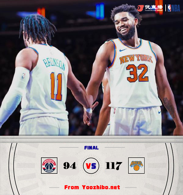 JRS直播网10月10日讯 NBA季前赛,尼克斯对阵奇才。比赛开始,尼克斯多点开花打出16-4的开局,此后却突然断电,奇才奋力反击轰出12-0的攻击波反超比分,次节尼克斯火力全开,连续利用防守反击拿分确立优势,奇才进攻端办法不多,半场战罢尼克斯54-39领先15分。易边再战,尼克斯牢牢占据场上主动,多点开花不断扩大领先,末节尼克斯稳扎稳打将优势保持到最后。最终,尼克斯117-94轻取奇才。