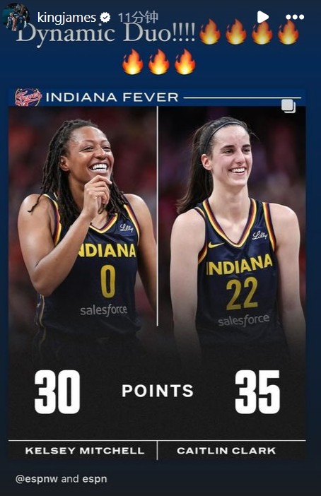 4、克拉克的队友凯尔希-米切尔21投12中,三分12中6也砍下30分,她们成为WNBA历史上第一对同场砍下至少30分且至少命中5记三分的队友。