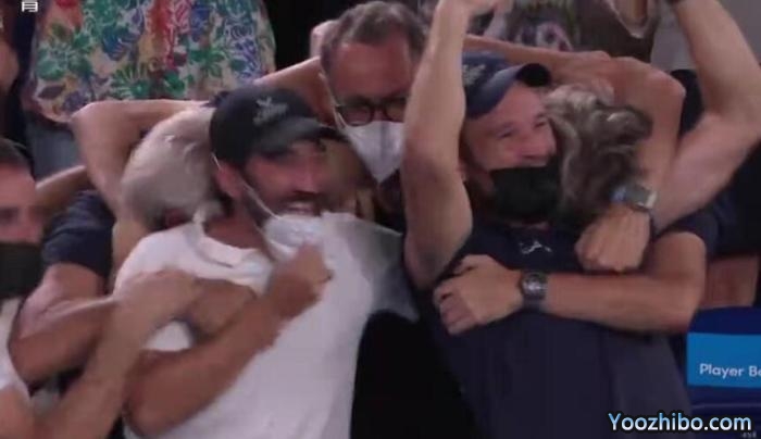 接着,纳达尔直接跪倒在场地中央,再度掩面宣泄自己的情绪。此时,纳达尔的团队早已经陷入疯狂。纳达尔随后也来到团队中,和他们一起庆祝。对于纳达尔和他的团队来说,这都是一个令人难以置信的成就。21座大满贯,历史第一人,而且至少在一段时间内,纳达尔是当之无愧的GOAT!