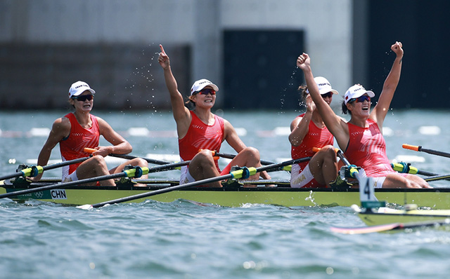 在1500米计时点强势领跑的陈云霞、张灵、吕扬与崔晓桐,最终率先冲过终点的成绩是6分05秒13成功折桂,帮助中国赛艇队时隔13年再夺奥运会金牌,同时也是中国体育代表团在东京奥运会第10金。波兰组合扎沃伊斯卡、韦利奇科、萨伊达克与齐尔曼,以及澳大利亚搭档汤普森、梅雷迪思、哈德森与克罗宁,斩获亚军和季军成绩分别是6分11秒36和6分12秒08。