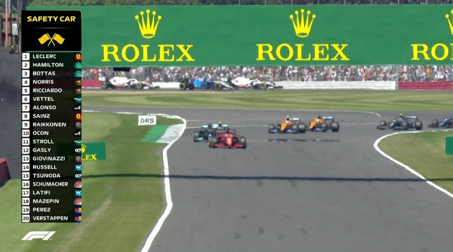 银石赛道本就不是一条安全的赛道,连当年迈克尔-舒马赫都曾在此撞断过双腿。虽然这个周末没发生过之前几站那么严重的事故,但这一切却在正赛开始时被打破了。其实赛前,阿隆索在前往发车格的路上就发生了侧滑,赛车画了个“甜甜圈”。