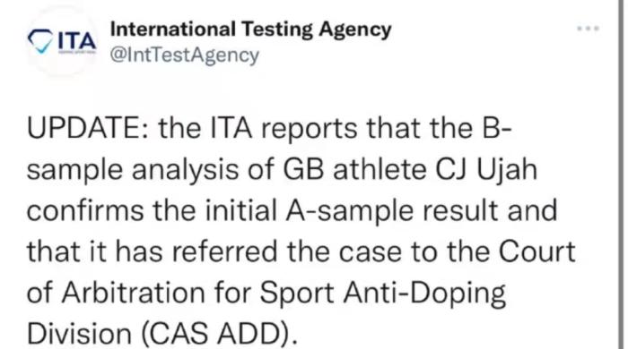 但奥运结束没多久,英国选手乌贾便在尿检环节出现问题,A瓶尿样呈阳性。这意味着,乌贾可能涉嫌违规。而对于这样的行为,获得第2名的英国接力队将被取消成绩。如今,乌贾的B瓶尿样同样呈阳性。可以说,获得第四名的中国队递补拿到铜牌,已经是板上钉钉。
