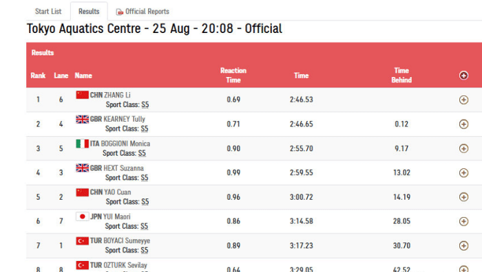 张丽是夺冠的大热门,同时也是卫冕冠军,在5年前的里约残奥会上,张丽一人夺得3枚金牌,其中包括了S5级女子200米自由泳、S5级50米自由泳和100米自由泳S5级,这次出战,她成功卫冕,确实展现出了极强的统治力。