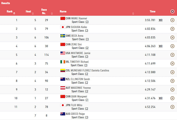 在场地自行车女子C1级资格赛,中国队的钱王伟以4分31秒476,打破世界纪录。钱王伟从小患有先天性脑瘫,智力正常但手脚有畸形。两年前在加拿大举行的残疾人自行车公路世界杯,钱王伟勇夺C1级公路个人20.8公里计时赛和C1级公路66.6公里大组赛两枚金牌,创造了属于自己的历史,这次她将好状态延续到了残奥会的赛场上,也希望她接下来可以好运。