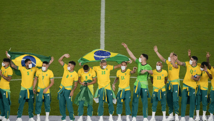 据报道,在赛后的颁奖典礼上,巴西男足登上领奖台,但意外的是,球员们拒绝穿中国品牌服饰去领奖。据悉,中国某运动排品牌是东京奥运会巴西队的赞助商,按照契约,巴西球员需要穿着中国品牌去领取金牌,但他们却没有这么做,被认为是吃饭砸锅的表现,连金主的面子也不给。
