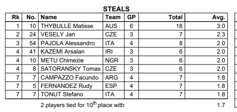 盖帽榜上哈达迪带来惊喜——这位老将出战3场,场均拿到1.7次盖帽,成为本届赛事的盖帽王。紧随其后的有尼日利亚的阿丘瓦、捷克的巴尔文。杜兰特、阿德巴约以及塔图姆,6场比赛都送出了7次盖帽,也是出现在了榜单的前列。
