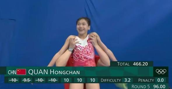 东京奥运会会,女子十米跳台的舞台上,5轮比赛,全红婵跳出了3轮满分,一轮接近满分,她打破了陈若琳创下的奥运会记录,她留下的记录之后也很难被人打破。