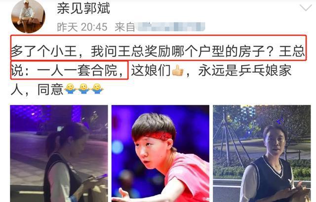 虽然很多球迷呼吁王楠郭斌夫妇能够奖励给王楚钦一套四合院,可是这事吧,虽然郭斌王楠可能不差这套房子,可是规矩就是规矩,说好的金牌银牌能拿房子,这点就肯定不能变。