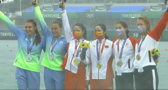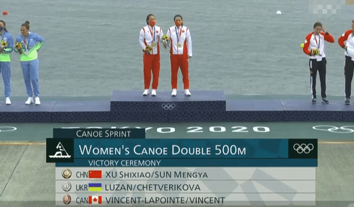 在经过短暂的休息后,决赛的比赛开打,女子500米双人划艇决赛,第五道的中国选手徐诗晓孙梦雅划出了1分55秒495的成绩夺金,这也是打破了奥运会记录,同时这是中国皮划艇女选手首枚奥运金牌。