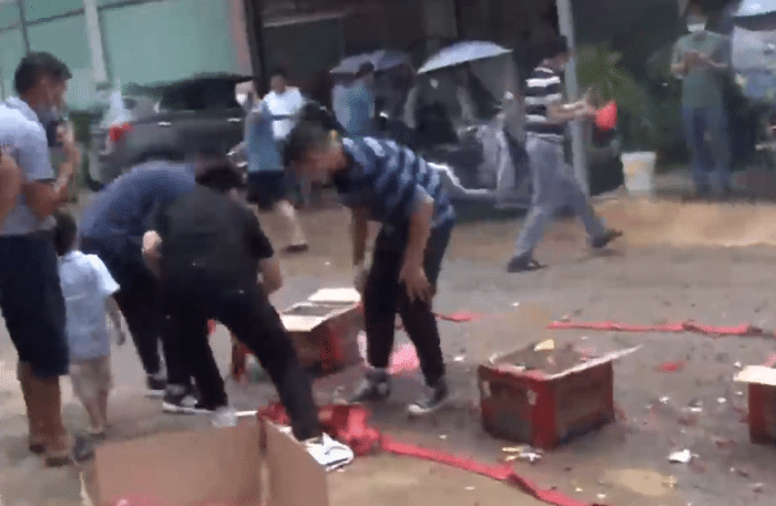 这场比赛,卢云秀老家漳州的亲友也通过电视观战。夺冠一刻,观战的人群爆发了非常热烈的欢呼声。很快,亲友们也点燃了早就准备好的鞭炮,鞭炮足足放了3分钟!