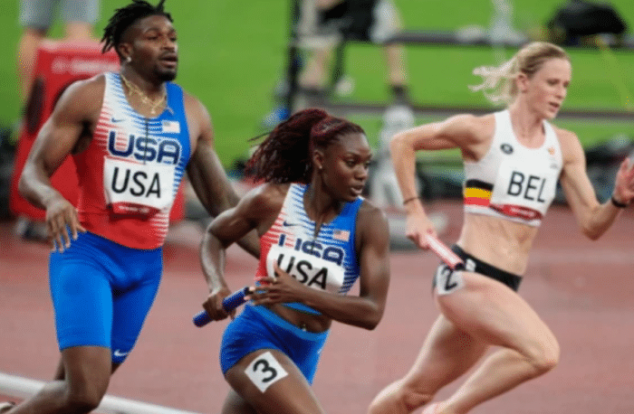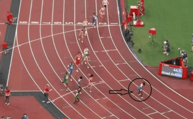 这次4*400米混合接力决赛,美国队小组第一个撞线,但被取消成绩。原因是第二棒接力选手,没有在接力区域接棒。但赛后,美国队申诉说是裁判让站在那里,申诉成功!而且美国直接进入决赛。美国田协首先发布消息,表示美国队已经重新得到了比赛资格,可以参加决赛。