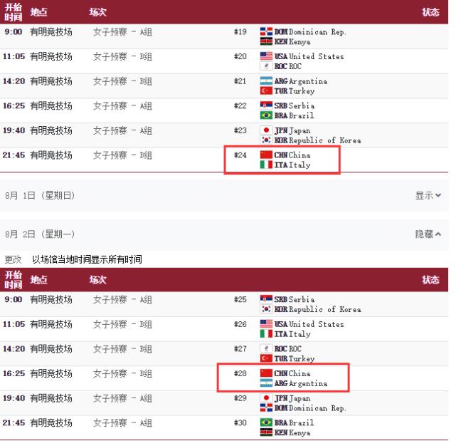 赛程:中国女排对手:意大利和俄罗斯;土耳其:阿根廷和俄奥队;俄奥队:美国和土耳其;