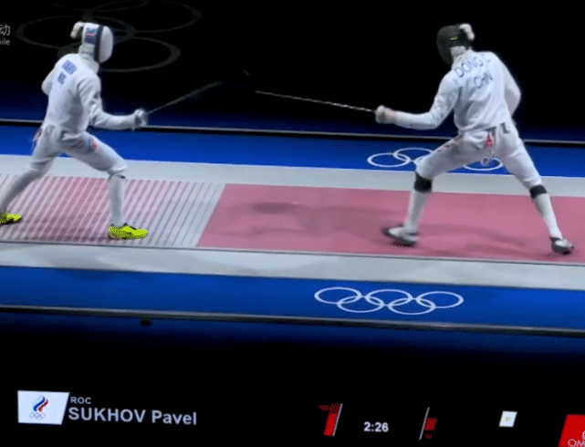 第六局比赛董超再度上场,他和苏克霍夫开局连续出现互相刺中,随后董超发力一度将分差追至26-27。随后苏克霍夫刺中1剑,中国队26-28落后进入第七局。