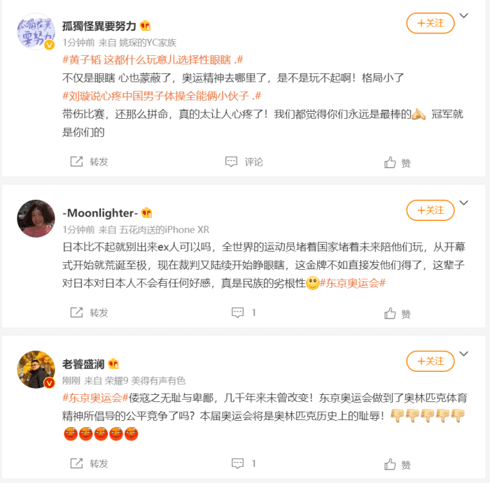 这件事不仅让中国人愤怒,甚至很多外国网友都看不下去了,为了夺金日本真是无所不用极其,出现明显的失误还能夺金?尽管最后肖若腾很大度地祝贺了对手,但明眼人都能看出来日本选手踩出界这样的重大失误,之后陈一冰、李小鹏等体操冠军纷纷在社媒力挺肖若腾怒斥日本,事后证实体操主席就是日本人,这个结果可想而知,没办法深挖!