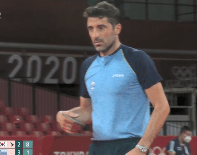 本场比赛,吉奥尼斯开局的发挥非常出色,他的反手削球让郑荣植非常不适应,前三局比赛他建立了2-1的优势,郑荣植完全处于被动。