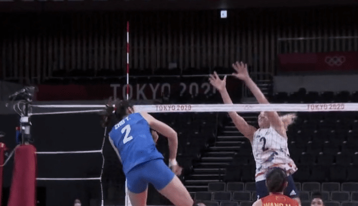 比赛中美国女排一传到位的情况下快攻还是很不错的,两队的比分交替上升,张常宁进攻端的感觉还是不错的,她也是上一战中国女排唯一得分上双的球员,此役延续了不俗的状态。